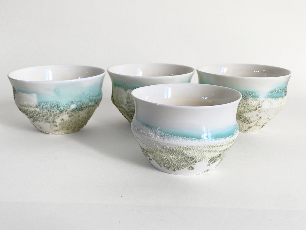 Tableware Porcelaine, studio-made GlazeArts de la table en Porcelaine, Email formulé dans mon atelierPorcelaine Tableweare with micro-crystal or soft satin glazePorcelaine tableweare with crawling glazeSlab-Built VolumesSculptural FormsContact